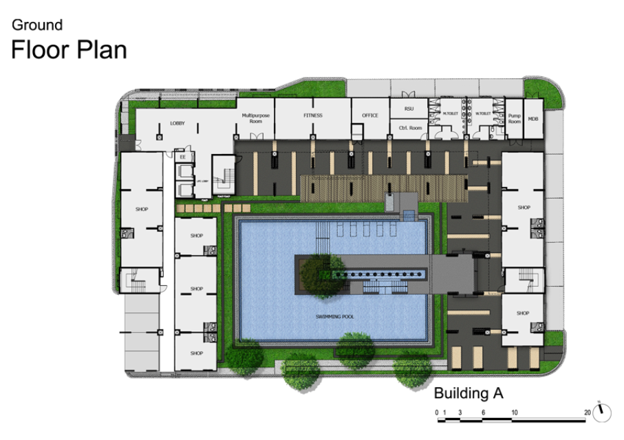 โครงการเป็นอาคารชุด 8 ชั้น จำนวน 6 อาคาร ตั้งอยู่ติดถนนรัตนาธิเบศร์